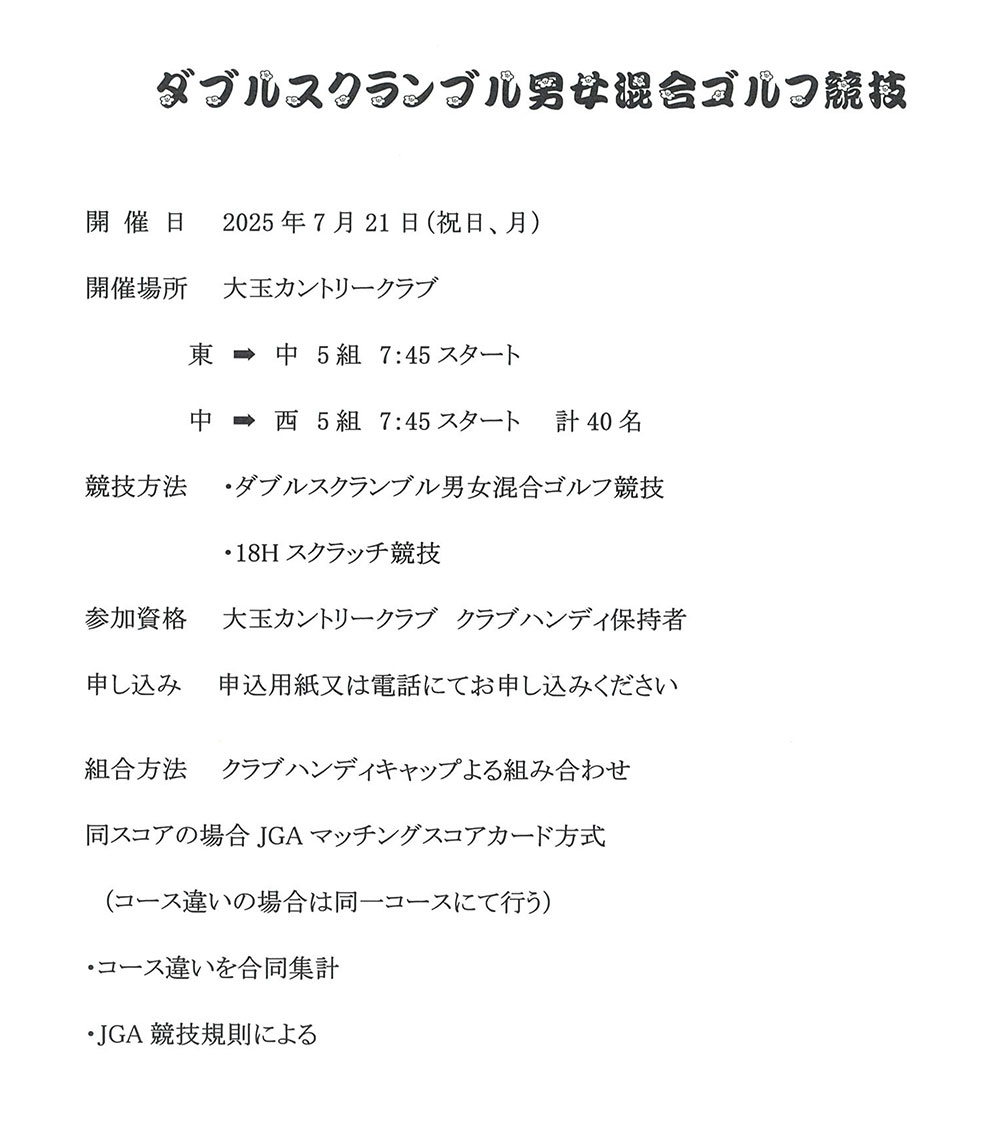 福島県老人クラブ連合会主催にて「第20回 福島県シニアゴルフ大会」が実施されます。